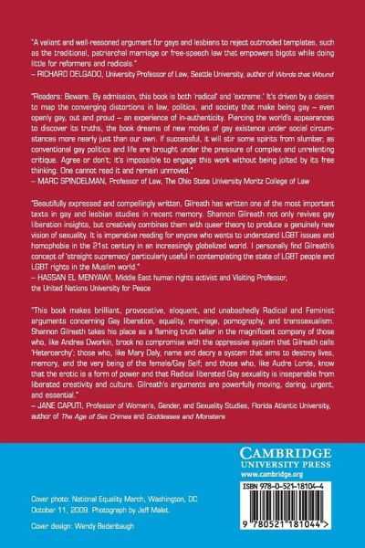 "A valiant and well-reasoned argument for gays and lesbians to reject outmoded templates, such as the traditional, patriarchal marriage or free-speech law that empowers bigots while doing little for reformers and radicals."
