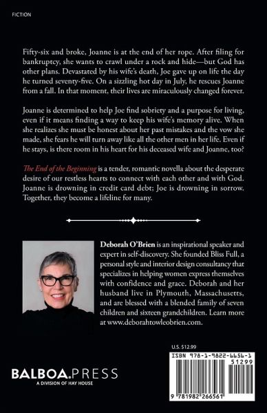 Fifty-six and broke, Joanne is at the end of her rope. After filing for bankruptcy, she wants to crawl under a rock and hide-but God has other plans. Devastated by his wife's death, Joe gave up on life the day he turned seventy-five. On a sizzling hot day in July, he rescues Joanne from a fall. In that moment, their lives are miraculously changed forever. Joanne is determined to help Joe find sobriety and a purpose for living, even if it means finding a way to keep his wife's memory alive. When she realizes she must be honest about her past mistakes and the vow she made, she fears he will turn away like all the other men in her life. Even if he stays, is there room in his heart for his deceased wife and Joanne, too? The End of the Beginning is a tender, romantic novella about the desperate desire of our restless hearts to connect with each other and with God. Joanne is drowning in credit card debt; Joe is drowning in sorrow. Together, they become a lifeline for many.