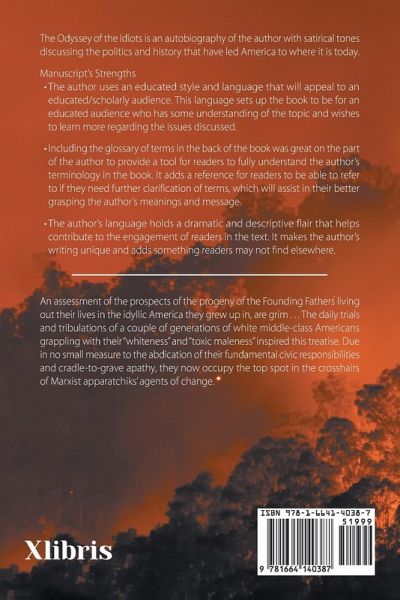 The Odyssey of the Idiots is an autobiography of the author with satirical tones discussing the politics and history that have led America to where it is today. Manuscript's Strengths ¿ The author uses an educated style and language that will appeal to an educated/scholarly audience. This language sets up the book to be for an educated audience who has some understanding of the topic and wishes to learn more regarding the issues discussed. ¿ Including the glossary of terms in the back of the book was great on the part of the author to provide a tool for readers to fully understand the author's terminology in the book. It adds a reference for readers to be able to refer to if they need further clarification of terms, which will assist in their better grasping the author's meanings and message. ¿ The author's language holds a dramatic and descriptive flair that helps contribute to the engagement of readers in the text. It makes the author's writing unique and adds something readers may not find elsewhere.