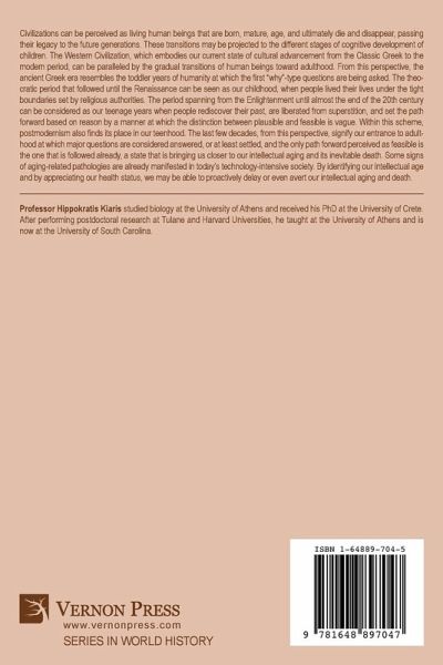 Civilizations can be perceived as living human beings that are born, mature, age, and ultimately die and disappear, passing their legacy to the future generations. These transitions may be projected to the different stages of cognitive development of children. The Western Civilization, which embodies our current state of cultural advancement from the Classic Greek to the modern period, can be paralleled by the gradual transitions of human beings toward adulthood. From this perspective, the ancient Greek era resembles the toddler years of humanity at which the first "why"-type questions are being asked. The theocratic period that followed until the Renaissance can be seen as our childhood, when people lived their lives under the tight boundaries set by religious authorities. The period spanning from the Enlightenment until almost the end of the 20th century can be considered as our teenage years when people rediscover their past, are liberated from superstition, and set the path forward based on reason by a manner at which the distinction between plausible and feasible is vague. Within this scheme, postmodernism also finds its place in our teenhood. The last few decades, from this perspective, signify our entrance to adulthood at which major questions are considered answered, or at least settled, and the only path forward perceived as feasible is the one that is followed already, a state that is bringing us closer to our intellectual aging and its inevitable death. Some signs of aging-related pathologies are already manifested in today's technology-intensive society. By identifying our intellectual age and by appreciating our health status, we may be able to proactively delay or even avert our intellectual aging and death.