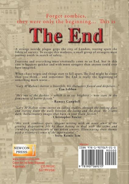 Forget zombies, they were only the beginning... This is The End A strange suicide plague grips the city of London, tearing apart the fabric of society. To escape this madness, a small group of strangers must journey north in search of safety. Everyone and everything must eventually come to an End, but in this case it happens quicker and with more savagery than anyone could ever have imagined. When chaos reigns and things start to fall apart, The End might be closer than you think...and sometimes The End is really the beginning of something much worse... "Gary McMahon's horror is heartfelt, his characters flawed and desperate..." - Tim Lebbon "He's one of the darkest - which is to say brightest - new stars in the firmament of horror fiction." - Ramsey Campbell