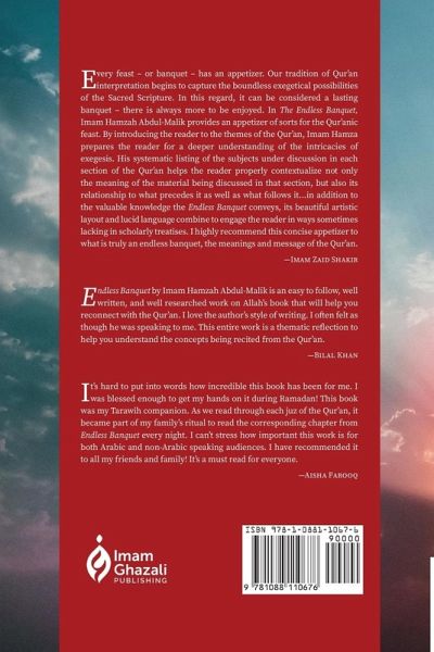 The Endless Banquet is a reading guide to help the average person understand the broader meanings of the Qur'an. This book explains each Surah by grouping its ayat together according to shared themes, to help you study its fundamental meanings and their connections with one another. The Endless Banquet will help you discover: The benefits of the Qur'an's repetition of certain phrases, & stories, albeit with different variations & details The wisdom of ayat shift from discussions of law to stories, to theological arguments, to descriptions of heaven and hell Connections between each Surah The wisdom & significance in the order of the Surahs How each Juz is divided upon overarching themes The context in which certain ayat were revealed & why these verses are still relevant today The Endless Banquet is designed to help you develop a deeper appreciation for the Qur'an - especially the parts which most people don't ordinarily read. This will increase your sense of wonder and awe at the Qur'an, so that you may seek to learn more, and be inspired to ask new questions about Allah's final revelation. As you become more familiar with its subtleties, your personal relationship with the Qur'an will naturally grow stronger, if Allah wills. Each chapter of The Endless Banquet covers one Juz. Written in easy-to-understand language, this book aims to inspire a new generation of readers of the Qur'an, among Muslims who are comfortable reading and speaking English. The Endless Banquet was written in the hope that the Qur'an may open the hearts of all who read it, and to help you become inspired by its meanings, its relevance to the present day, and its connections to the human condition and to your own life. The Endless Banquet will help you to rekindle your love for the Qur'an, if Allah wills.