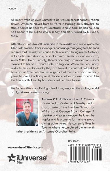 All Bucky Whalen ever wanted to be was an honest harness-racing driver. When he moves from his farm in Harrington, Delaware, to stable horses at Speedway Racetrack in New York, he has no idea he's about to be pulled into a seedy and dark world by his uncle, Max. After Bucky finds himself immersed in the middle of a crime syndicate filled with crooked track managers and dangerous gangsters, he soon realizes that the only way out is for him to start fixing races. As Bucky sinks further into despair, he seeks comfort in his first and only love, Anna Miller. Unfortunately, there's one major complicationshe's married to his best friend, Cole Callaghan. When the two finally rekindle their relationship, they are forced to confront not just their betrayal of Cole but also the tragedy that tore them apart so many years before. Now Bucky must decide whether to move forward into the future with Anna by his side or set her free forever. The Endless Mile is a rollicking tale of love, loss, and the exciting world of high stakes harness racing.