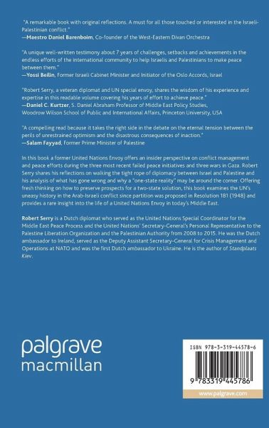 In this book a former United Nations Envoy offers an insider perspective on conflict management and peace efforts during the three most recent failed peace initiatives and three wars in Gaza. Robert Serry shares his reflections on walking the tight rope of diplomacy between Israel and Palestine and his analysis of what has gone wrong and why a "one-state reality" may be around the corner. Offering fresh thinking on how to preserve prospects for a two-state solution, this book examines the UN's uneasy history in the Arab-Israeli conflict since partition was proposed in resolution 181 (1948) and provides a rare insight into the life of a United Nations Envoy in today's Middle East.