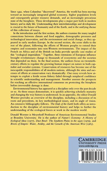 Preface; Part I. Introduction: 1. The vulnerable Earth: toward a planetary history Donald Worster; Part II. Dynamics of Change: 2. Environment, population, and technology in primitive societies Ester Boserup; 3. Climatic fluctuations and population problems in early modern history Gustaf Utterström; 4. The English industrial revolution Richard G. Wilkinson; Part III. The European Invasion: 5. Ecological imperialism: the overseas migration of Western Europeans as a biological phenomenon Alfred W. Crosby; 6. The depletion of India's forests under British imperialism: planters, foresters, and peasants in Assam and Kerala Richard P. Tucker; 7. Toward an archaeology of colonialism: elements in the ecological transformation of the Ivory Coast Timothy C. Weiskel; Part IV. Conserving Nature - Past and Present: 8. The myth of the southern soil miner: macrohistory, agricultural innovation, and environmental change Carville Earle; 9. Toward an interactive theory of nature and culture: ecology, production, and cognition in the California fishing industry Arthur F. McEvoy; 10. Efficiency, equity, esthetics: shifting themes in American cconservation Clayton R. Koppes; 11. The changing face of soviet conservation Douglas R. Weiner; Part V. Conclusion: 12. Toward a biosphere consciousness Raymond F. Dasmann; Appendix; Bibliography; Index.