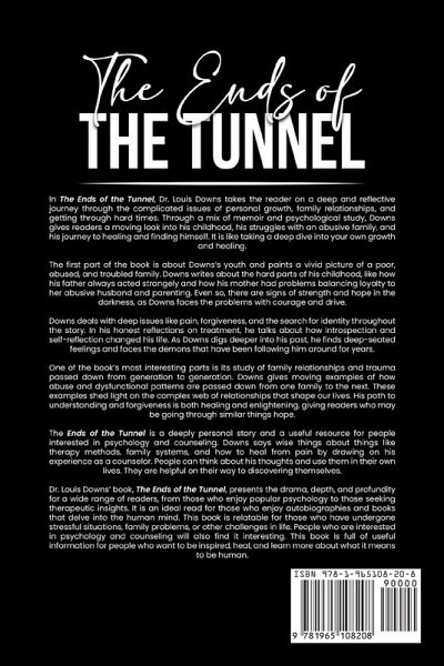 In The Ends of the Tunnel, Dr. Louis Downs takes the reader on a deep and reflective journey through the complicated issues of personal growth, family relationships, and getting through hard times. Through a mix of memoir and psychological study, Downs gives readers a moving look into his childhood, his struggles with an abusive family, and his journey to healing and finding himself. It is like taking a deep dive into your own growth and healing The first part of the book is about Downs's youth and paints a vivid picture of a poor, abused, and troubled family. Downs writes about the hard parts of his childhood, like how his father always acted strangely and how his how his mother had problems balancing loyalty to her abusive husband and parenting. Even so, there are signs of strength and hope in the darkness, as Downs faces the problems with courage and drive. Downs deals with deep issues like pain, forgiveness, and the search for identity throughout the story. In his honest reflections on treatment, he talks about how introspection and self-reflection changed his life. As Downs digs deeper into his past, he finds deep-seated feelings and faces the demons that have been following him around for years.