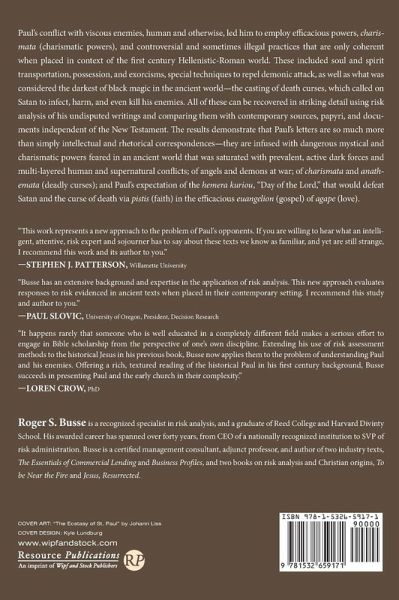 Paul's conflict with viscous enemies, human and otherwise, led him to employ efficacious powers, charismata (charismatic powers), and controversial and sometimes illegal practices that are only coherent when placed in context of the first century Hellenistic-Roman world. These included soul and spirit transportation, possession, and exorcisms, special techniques to repel demonic attack, as well as what was considered the darkest of black magic in the ancient world--the casting of death curses, which called on Satan to infect, harm, and even kill his enemies. All of these can be recovered in striking detail using risk analysis of his undisputed writings and comparing them with contemporary sources, papyri, and documents independent of the New Testament. The results demonstrate that Paul's letters are so much more than simply intellectual and rhetorical correspondences--they are infused with dangerous mystical and charismatic powers feared in an ancient world that was saturated with prevalent, active dark forces and multi-layered human and supernatural conflicts; of angels and demons at war; of charismata and anathemata (deadly curses); and Paul's expectation of the hemera kuriou, "Day of the Lord," that would defeat Satan and the curse of death via pistis (faith) in the efficacious euangelion (gospel) of agape (love).