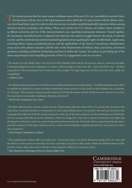 This book presents the five major enemy combatant cases of the post-9/11 era. Presented in narrative form, these original documents tell the story that clarifies the questions at the heart of the American detention of alleged combatants in the war on terror. These documents discuss the right to counsel, the right to a trial, the right for the accused to see the evidence against him, and the intersection between domestic and international law. The book highlights the tension between the needs of national security and the liberties allotted to alleged enemies of the state by highlighting the basic question of what the US Constitution guarantees and to whom. The reader can follow the evolving arguments about presidential powers in time of war, habeas corpus, the Geneva Conventions, balance of powers, and matters of detention and prisoner treatment. This book is meant for those who seek to understand the issues that have dominated the search for balance between justice and security in the war on terror.