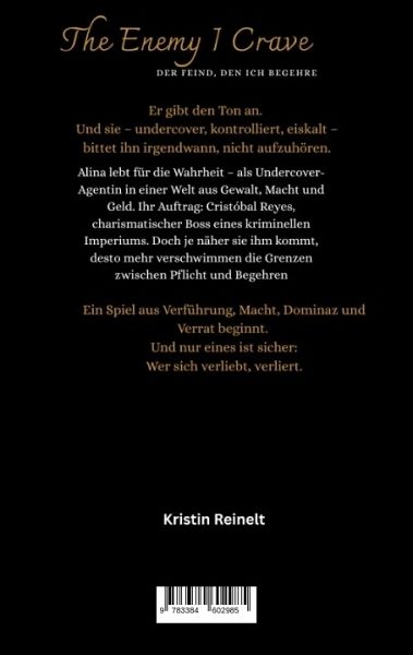 The Enemy I Crave - Der Feind, den ich begehreSie ist Undercover-Agentin.Er ist ihr Ziel - und das Verlangen, das sie nicht stoppen kann.Alina Moreau lebt im Schatten. Ihre Einsätze sind präzise, ihre Tarnungen perfekt - Gefühle haben darin keinen Platz. Doch als sie in Cristóbal Reyes' Welt aus Waffen, Geld und Macht eindringt, gerät alles ins Wanken.Cristóbal ist gefährlich, dominant, unberechenbar - und genau das macht ihn so unwiderstehlich. Zwischen ihnen lodert etwas, das mehr ist als Verführung: ein Spiel aus Vertrauen und Verrat, Nähe und Kontrolle.Wie kannst du jemanden zu Fall bringen,den du längst mit jeder Faser begehrst?Ein Roman über Liebe am Abgrund, über den Preis der Wahrheit - und darüber, was geschieht, wenn Kontrolle zur Illusion wird.