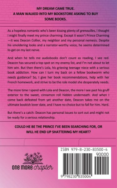 She's searching for Prince Charming, but can a grumpy neighbor rewrite her love story? My dream came true. A man walked into my bookstore asking to buy some books. As a hopeless romantic who's been kissing plenty of grenouilles, I thought I might finally meet my prince charming. Except it wasn't Prince Charming-it was Deacon Collier, my neighbor and my personal nemesis. Despite his smoldering looks and a narrator-worthy voice, he seems determined to get on my last nerve. And when he tells me audiobooks don't count as reading, I see red. Deacon has secured a top spot on my enemy list, and I'm not about to let him win. But then there's Lola, his grieving teenage niece with a serious book addiction. How can I turn my back on a fellow bookworm who needs guidance? So, I give her book recommendations, help with her French homework, and strive to be the role model she desperately needs. The more time I spend with Lola and Deacon, the more I see past his gruff exterior to the sweet, cinnamon roll hidden underneath. And when I come back defeated from yet another date, Deacon takes me on the ultimate bookish lover date, and I have no choice but to fall for him. Hard. But there's a Deacon has personal issues to sort out and might not be ready for a serious relationship. Could he be the prince I've been searching for, or will he end up shattering my heart? The Enemy Plot is an enemies to lovers romcom between a grumpy bar owner and a romantic bookstore owner. It's the second book in the One More Chapter series. From Bookstagram besties to bookstore owners, follow three bookish girls as they navigate their own real life romance drama in the hope of finding their HEA. All books are standalones and can be read in any order. Perfect for fans ¿¿Enemies to Lovers ¿¿Grumpy x Sunshine ¿¿Single Dad ¿¿Neighbors ¿¿Age Gap ¿¿Bookish Girl ¿¿Protective Hero ¿¿Closed Door/Kisses Only