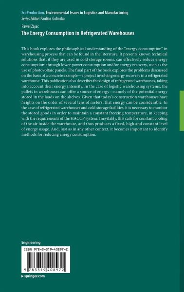This book explores the philosophical understanding of the "energy consumption" in warehousing process that can be found in the literature. It presents known technical solutions that, if they are used in cold storage rooms, can effectively reduce energy consumption: through lower power consumption and/or energy recovery, such as the use of photovoltaic panels. The final part of the book explores the problems discussed on the basis of a concrete example - a project involving energy recovery in a refrigerated warehouse.This publication also describes the design of refrigerated warehouses, taking into account their energy intensity. In the case of logistic warehousing systems, the pallets in warehouses can offer a source of energy - namely of the potential energy stored in the loads on the shelves. Given that today's construction warehouses have heights on the order of several tens of meters, that energy can be considerable. In the case of refrigerated warehouses and cold storage facilities, it is necessary to monitor the stored goods in order to maintain a constant freezing temperature, in keeping with the requirements of the HACCP system. Inevitably, this calls for constant cooling of the air inside the warehouse, and thus produces a fixed, high and constant level of energy usage. And, just as in any other context, it becomes important to identify methods for reducing energy consumption.