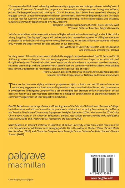 "All of us who believe in the democratic mission of higher education have been waiting for a book like this for a long, long time. The Engaged Campus thoughtfully and powerfully ushers in the next essential wave of research, scholarship, and practice in community engagement. Tying a brilliant historical account of the theoretical and practical roots of the community engagement movement to reports from key program leaders, critics, and higher education scholars, this book offers refreshing conceptual clarity. The Engaged Campus will undoubtedly be a required companion for all higher education professionals and scholars who hope their twenty-first century institutions will prepare students to be not only workers and wage-earners but also stewards of our democracy." - Joel Westheimer, University Research Chair in Education and Democracy at the University of Ottawa; Founder and Executive Director, Democratic Dialogue (www.DemocraticDialogue.com) "For anyone who thinks service learning and community engagement are no longer relevant in today's era of Occupy Wall Street and Citizens United, anyone who assumes that college campuses have gone moribund, pick up The Engaged Campus and think again. Dan W. Butin and Scott Seider have assembled a battery of engaged scholars to help them report on the latest developments in service and higher education. The result is a must-read for everyone who cares about democratic citizenship, from college students and university faculty to community organizers and civic NGO leaders." - Benjamin R. Barber, Distinguished Senior Fellow, DEMOS; Founder and President, Interdependence Movement (CivWorld at DEMOS); Walt Whitman Professor Emeritus, Rutgers University "Acutely aware of the critical crossroads at which the engaged campus has arrived, Dan W. Butin and Scott Seider urge us to move beyond the community engagement movement into a deeper, more systematic and disciplined endeavor. Their edited collection of essays details an intellectual movement based in authentic, sustained partnerships with the community that benefit both the community and the academy while building new curricular opportunities for students and a highly rigorous field of study. For all who seek to envision and fashion the engaged campus of the twenty-first century, this new collection of essays edited by Butin and Seider will prove to be highly instructive and a invaluable resource." - Katie Flowers, assistant director of the Center for Community Engagement and Service-Learning, Hobart and William Smith Colleges…mehr