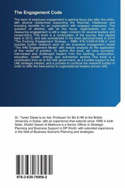 The topic of employee engagement is gaining focus day after the other, with several researches supporting the financial, intellectual and branding benefits for an organization with engaged employees. The question of whether, with all this focus, organizations are truly measuring engagement is still a major concern for several leaders and researchers. This book is a continuation of the journey that started back in 2012, and was summarized in the book launched back in 2014 "The Evolving Engagement Strategy - ISBN: 978-3-639-51458-2" and includes further research work on the proposed engagement model "The 4H© Engagement Model" with deeper analysis on the application of this model in practice. To author this book, we have surveyed, interviewed and challenged leaders from the banking, construction, education, health, energy and automotive sectors. This book is a contribution from us to the UAE government, as a humble support to the UAE strategic mission, and a promise to continue the research further in order to offer the best advice to organizational leaders across UAE.