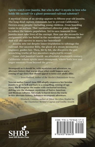 A mystical vision of an airship appears to fifteen-year-old Juanita. The ethereal captain commands her to prevent California’s thrown-away people—including young children—from boarding trains to an asylum. That institution’s director plots murder to reduce the inmate population. Yet to save innocent lives Juanita must take lives of the corrupt. How can she reconcile her assignment with her belief in the sacredness of all human life? And will she survive to marry her betrothed? Juanita sets out despite inner trepidation to sabotage the railroad. Her ancestor Billy guides her. Then bit by bit, she discovers the gut-wrenching truths all of her ancestors neglected to reveal. Come visit Juanita’s world—an alternate nineteenth-century California—where spirits meet steampunk, where both love and anger emanate from beyond the grave.