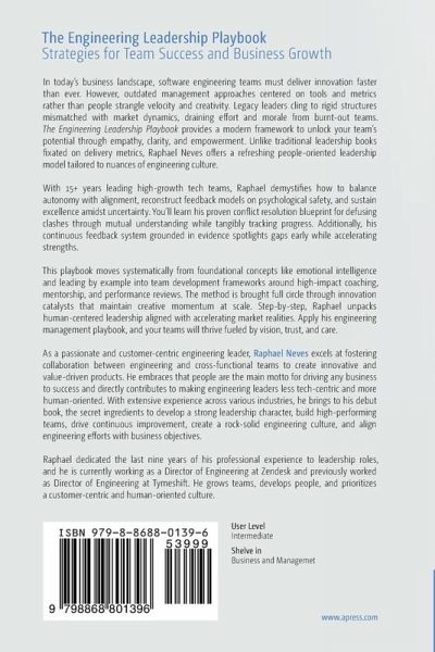 The Engineering Leadership Playbook provides a modern framework to unlock your team's potential through empathy, clarity, and empowerment. Unlike traditional leadership books fixated on delivery metrics, Raphael Neves offers a refreshing people-oriented leadership model tailored to nuances of engineering culture.