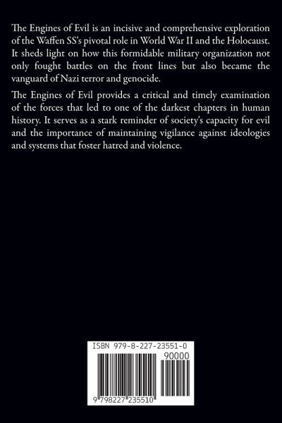 The Engines of Evil is an incisive and comprehensive exploration of the Waffen SS's pivotal role in World War II and the Holocaust. It sheds light on how this formidable military organization not only fought battles on the front lines but also became the vanguard of Nazi terror and genocide. Key Features of the Book: In-Depth Analysis: The book provides a thorough examination of the Waffen SS's evolution from Hitler's elite personal guard to a multifaceted force intricately involved in Nazi atrocities. Ideological Insights: It explores the National Socialist ideology that fueled the SS's actions and justified its atrocities, offering a deep dive into the mindset that enabled ordinary men to commit extraordinary crimes. Mechanisms of Genocide: The book meticulously details the operational and bureaucratic systems that facilitated the Holocaust and other genocidal acts, exposing the cold efficiency with which these atrocities were carried out. Personal Narratives: Through firsthand accounts and historical records, the experiences of both perpetrators and victims are brought to life, providing a human dimension to the historical narrative. Broader Context: The work places the Holocaust within the wider spectrum of Nazi genocidal policies, including the conquest and racial reshaping of Eastern Europe. Understanding the origins and execution of the Holocaust and Nazi genocide is crucial for preventing future atrocities. The Engines of Evil provides a critical and timely examination of the forces that led to one of the darkest chapters in human history. It serves as a stark reminder of the capacity for evil that exists within society and the importance of maintaining vigilance against the ideologies and systems that foster hatred and violence. We invite you to read The Engines of Evil and join the ongoing conversation about the lessons of the past and the path to a more just and humane future.