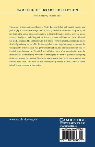 Editor of The Economist from 1861 until his death, Walter Bagehot (1826â 77) wrote across an array of subjects, from banking to literature. In this classic 1867 publication, he sought to describe the 'living reality' of how Britain was governed, making a notable distinction between 'dignified' and 'efficient' constitutional components.