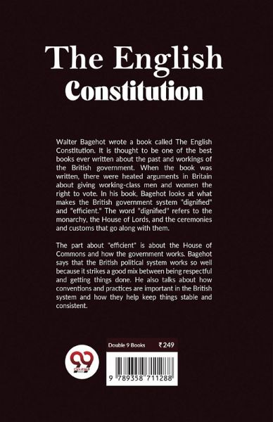 Walter Bagehot wrote a book called The English Constitution. It is thought to be one of the best books ever written about the past and workings of the British government. When the book was written, there were heated arguments in Britain about giving working-class men and women the right to vote. In his book, Bagehot looks at what makes the British government system "dignified" and "efficient." The word "dignified" refers to the monarchy, the House of Lords, and the ceremonies and customs that go along with them. The part about "efficient" is about the House of Commons and how the government works. Bagehot says that the British political system works so well because it strikes a good mix between being respectful and getting things done. He also talks about how conventions and practices are important in the British system and how they help keep things stable and consistent.