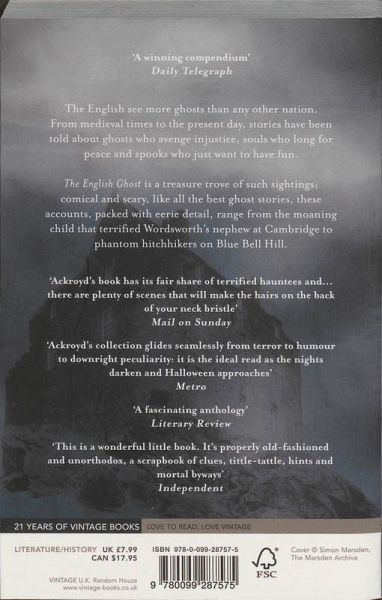 The English see more ghosts than any other nation. comical and scary, like all the best ghost stories, these accounts, packed with eerie detail, range from the moaning child that terrified Wordworth's nephew at Cambridge to modern day hitchhikers on Blue Bell Hill.
