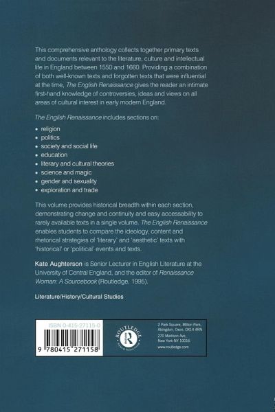 Kate Aughterson is Senior Lecturer in English Literature at the University of Central England, and the editor of Renaissance Woman: A Sourcebook (Routledge, 1995).