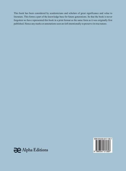 This book has been considered by academicians and scholars of great significance and value to literature. This forms a part of the knowledge base for future generations. So that the book is never forgotten we have represented this book in a print format as the same form as it was originally first published. Hence any marks or annotations seen are left intentionally to preserve its true nature.