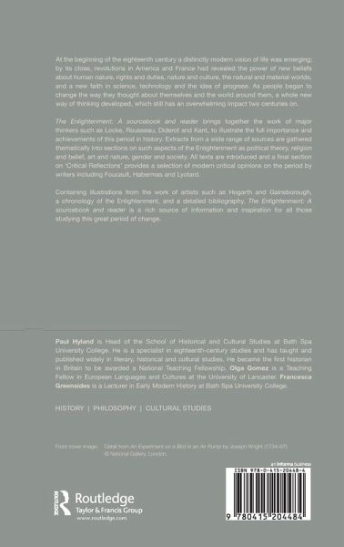 By the end of the eighteenth century a distinctly modern vision of life was emerging. The revolutions in America and France revealed new beliefs about human nature, rights and duties, the natural and material worlds, and a new faith in science, technology and the idea of progress. As people began to change the way they thought about themselves and the world around them, a whole new way of thinking developed, which still has an overwhelming impact two centuries on. The Enlightenment brings together the work of major Enlightenment thinkers such as Hobbes, Rousseau, Diderot and Kant, to illustrate the full importance and achievements of this period in history. Extracts are gathered thematically into sections on such aspects of the Enlightenment as: political theory religion and belief art and nature. All essays are introduced and a final section on 'Critical Reflections' provides a selection of modern critical opinions on the period by writers including Foucault, Habermas, and Lyotard.