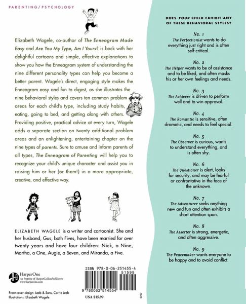 Elizabeth Wagele, coauthor of "The Enneagram Made Easy" and "Are You My Type, Am I Yours?," offers the first practical guidebook for parents -- packed with her delightful cartoons -- on how the Enneagram can help to understand and work with children's personality traits and behavioral patterns more effectively and creatively. Using her expertise in making the Enneagram accessible through simple text and zany, informative cartoons, Wagele shows parents how to be flexible and compassionate, willing and eager to recognize the unique potential of every child and to respond to and nurture each child appropriately.