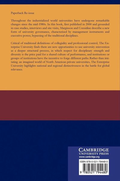 Throughout the industrialised world, universities have undergone remarkable changes since the mid-1980s. In Australia, interest has been intense, and publication of The Enterprise University was very timely. First published in 2001, it was the first systematic study of the Australian system since the momentous Dawkins reforms ten years earlier. The book is grounded in case studies of most of the major Australian universities: the authors interviewed a large number of senior managers. They also have taken account of global trends and have prepared the book in the light of international research on the university as an institution. The authors contend that the modern university can be understood as an 'enterprise university', characterised by corporate-style executive leadership. In a hard-hitting conclusion they propose novel policies and directions for Australia's higher education system.