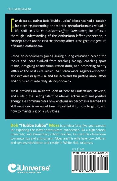 For decades, author Bob "Hubba Jubba" Moss has had a passion for teaching, promoting, and mentoring enthusiasm as a valuable life skill. In The Enthusiasm-Laffter Connection, he offers a thorough understanding of the enthusiasm-laffter connection, a concept based on the idea that hearty laffter is the greatest gesture of human enthusiasm. Based on experiences gained during a long education career, the topics and ideas evolved from teaching biology, coaching sport teams, designing tennis visualization drills, and promoting hearty laffter as the best enthusiasm. The Enthusiasm-Laffter Connection also explores easy-to-use and fun activities for putting more laffter and enthusiasm into daily life experiences. Moss provides an in-depth look at how to understand, develop, and sustain the lasting talent of eternal enthusiasm and positive energy. He communicates how enthusiasm becomes a learned life skill once one is aware of how important it is, how to get it, and how to maintain it on a 24/7 basis.