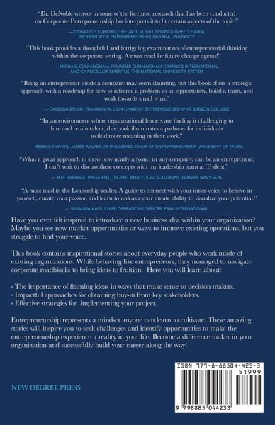 Have you ever felt inspired to introduce a new business idea within your organization? Maybe you see new market opportunities or ways to improve existing operations, but you struggle to find your voice. This book contains inspirational stories about everyday people who work inside of existing organizations. While behaving like entrepreneurs, they managed to navigate corporate roadblocks to bring ideas to fruition. Here you will learn about:The importance of framing ideas in ways that make sense to decision makers. Impactful approaches for obtaining buy-in from key stakeholders. Effective strategies for implementing your project. Entrepreneurship represents a mindset anyone can learn to cultivate. These amazing stories will inspire you to seek challenges and identify opportunities to make the entrepreneurship experience a reality in your life. Become a difference maker in your organization and successfully build your career along the way!