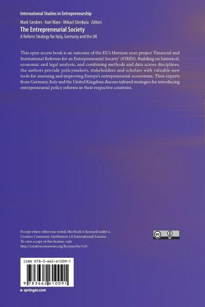 This open access book is an outcome of the EU's Horizon 2020 project 'Financial and Institutional Reforms for an Entrepreneurial Society' (FIRES). Building on historical, economic and legal analysis, and combining methods and data across disciplines, the authors provide policymakers, stakeholders and scholars with valuable new tools for assessing and improving Europe's entrepreneurial ecosystems. Then experts from Germany, Italy and the United Kingdom discuss tailored strategies for introducing entrepreneurial policy reforms in their respective countries.