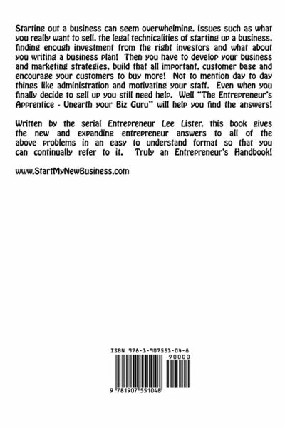 Starting out a business can seem overwhelming. Issues such as what you really want to sell, the legal technicalities of starting up a business, finding enough investment from the right investors and writing a business plan are hard enough. Then you have to develop your business and marketing strategies, build that all important, customer base and encourage your customers to buy more! Not to mention day to day things like administration and motivating your staff. Even when you finally decide to sell up you still need help. Well "The Entrepreneur's Apprentice - Unearth your Biz Guru" will help you find the answers! Written by the serial Entrepreneur Lee Lister, this book gives the new and expanding entrepreneur answers to all of the above problems in an easy to understand format so that you can continually refer to it. Truly an Entrepreneur's Handbook! www.StartMyNewBusiness.com