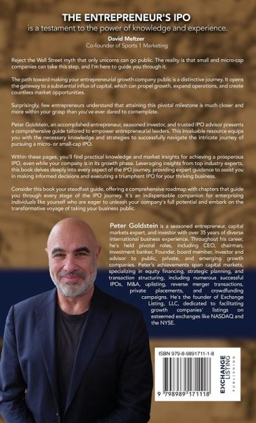 Reject the Wall Street myth that only unicorns can go public. The reality is that small and micro-cap companies can take this step, and I'm here to guide you through it. The path toward making your entrepreneurial growth company public is a distinctive journey. It opens the gateway to a substantial influx of capital, which can propel growth, expand operations, and create countless market opportunities. Surprisingly, few entrepreneurs understand that attaining this pivotal milestone is much closer and more within your grasp than you've ever dared to contemplate. Peter Goldstein, an accomplished entrepreneur, seasoned investor, and trusted IPO advisor presents a comprehensive guide tailored to empower entrepreneurial leaders. This invaluable resource equips you with the necessary knowledge and strategies to successfully navigate the intricate journey of pursuing a micro- or small-cap IPO. Within these pages, you'll find practical knowledge and market insights for achieving a prosperous IPO, even while your company is in its growth phase. Leveraging insights from top industry experts, this book delves deeply into every aspect of the IPO journey, providing expert guidance to assist you in making informed decisions and executing a triumphant IPO for your thriving business. Consider this book your steadfast guide, offering a comprehensive roadmap with chapters that guide you through every stage of the IPO journey. It's an indispensable companion for enterprising individuals like yourself who are eager to unleash your company's full potential and embark on the transformative voyage of taking your business public.