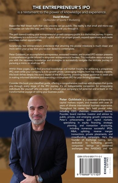 Reject the Wall Street myth that only unicorns can go public. The reality is that small and micro-cap companies can take this step, and I'm here to guide you through it. The path toward making your entrepreneurial growth company public is a distinctive journey. It opens the gateway to a substantial influx of capital, which can propel growth, expand operations, and create countless market opportunities. Surprisingly, few entrepreneurs understand that attaining this pivotal milestone is much closer and more within your grasp than you've ever dared to contemplate. Peter Goldstein, an accomplished entrepreneur, seasoned investor, and trusted IPO advisor presents a comprehensive guide tailored to empower entrepreneurial leaders. This invaluable resource equips you with the necessary knowledge and strategies to successfully navigate the intricate journey of pursuing a micro- or small-cap IPO. Within these pages, you'll find practical knowledge and market insights for achieving a prosperous IPO, even while your company is in its growth phase. Leveraging insights from top industry experts, this book delves deeply into every aspect of the IPO journey, providing expert guidance to assist you in making informed decisions and executing a triumphant IPO for your thriving business. Consider this book your steadfast guide, offering a comprehensive roadmap with chapters that guide you through every stage of the IPO journey. It's an indispensable companion for enterprising individuals like yourself who are eager to unleash your company's full potential and embark on the transformative voyage of taking your business public.