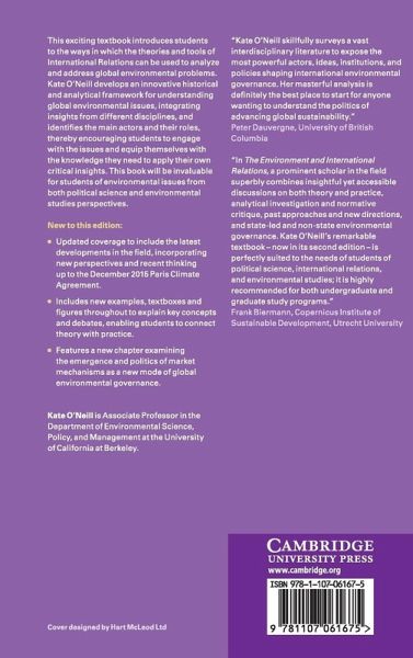 The new edition of this invaluable introduction has been updated and revised throughout, including new figures, examples, textboxes, and a new chapter. Using an innovative framework, the book introduces students to the ways in which the theories and tools of international relations can be used to analyse and address global environmental problems.