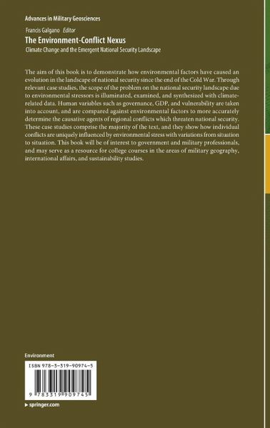 Chapter 1. The Environment-Conflict Nexus.- Chapter 2. States at Risk: The Environment-Conflict Model.- Chapter 3. Defining Climate Change: What to Expect in a Warmer World.- Chapter 4. Abrupt Climate Change.- Chapter 5. Water in the Middle East.- Chapter 6. Water, Land, and Governance: Environmental Security in Dense Urban Areas in Sub-Saharan Africa.- Chapter 7. When Politics, the Environment, and Advocacy Compete-Environmental Security in the South China Sea.- Chapter 8. East Africa in World War I: A Geographic Analysis.- Chapter 9. Conflict in the Horn of Africa: The Ogaden War of 1977.- Chapter 10. The 1994 Rwandan Genocide.- Chapter 11. Climate and the Syrian Civil War.