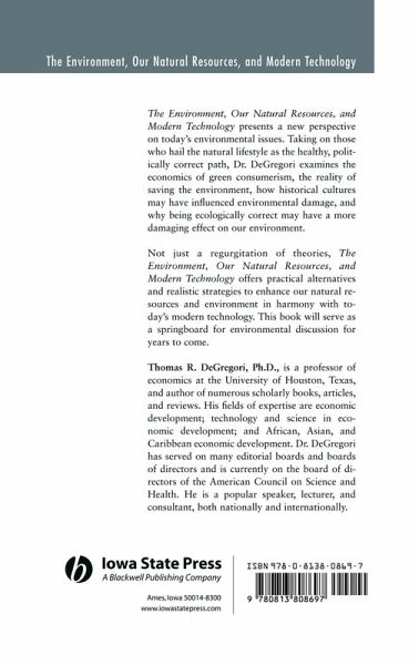 Always controversial, Thomas DeGregori has released another classic volume that is sure to inform, confound, and present new perspectives on todays environmental issues. This time he is taking on the environmentalists, naturalists, green consumerists, and those that hail the natural lifestyle as the healthy, politically correct thing to do. DeGregori examines the economics of green consumerism, the reality of saving the environment, how historical cultures may have influenced environmental damage, and how being ecologically correct may have a more damaging effect on our environment. Not just a regurgitation of theories; DeGregori offers real-time strategies and alternatives to enhance our natural resources and our environment in harmony with today's modern technology. This is the book everyone will be talking about for years to come.