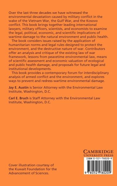 Foreword by Klaus Toepfer; Introduction Jay E. Austin and Carl Bruch; Part I. General Principles: 1. Introduction Carl Bruch; 2. The environment in wartime: an overview Christopher Stone; Part II. The Legal Framework. Existing and Emerging Wartime Standards: 3. Introduction Carl Bruch; 4. The laws of war and environmental damage Adam Roberts; 5. War and the environment: fault lines in the prescriptive landscape Michael N. Schmitt; 6. The inadequacy of the existing legal approach to environmental protection in wartime Richard Falk; 7. United States Navy development of operational-environmental doctrine Captain John P. Quinn, Captain Richard T. Evans and Lt. Commander Michael J. Boock; 8. In furtherance of environmental guidelines for armed forces during peace and war Arthur H. Westing; Lessons from Other Legal Regimes: 9. Introduction Jay E. Austin; 10. Peacetime environmental law as a basis of state responsibility for environmental damage caused by war Silja Voneky; 11. Environmental damages under the Law of the Sea convention Thomas Mensah; 12. The place of the environment in international tribunals David Caron; 13. Civil liability for war-caused environmental damage: models from United States law Jeffrey G. Miller; Part III. Assessing the Impacts - Scientific Methods and Issues. Ecological and Natural Resource Impacts: 14. Introduction Jessica D. Jacoby; 15. Assessing long-term environmental consequences of war Asit K. Biswas; 16. The Gulf War impact on terrestrial environment of Kuwait: an overview Samira A. S. Omar, Ernest Briskey, Raafat Misak and Adel A. S. O. Asem; 17. War-related damages to the marine environment in the ROPME sea area Mahmood Y. Abdulraheem; 18. War and biodiversity: an assessment of impacts Jeffrey A. McNeely; Public Health Impacts: 19. Introduction Jessica D. Jacoby; 20. Tracking the four horsemen: the public health approach to the impact of war and war-induced environmental destruction in the twentieth century Jennifer Leaning; 21. Defoliants: the long-term health implications Alastair W. M. Hay; 22. The impact of military preparedness and militarism on health and the environment Victor W. Sidel; 23. War and infectious diseases: international law and the public health consequences of armed conflict David P. Fidler; Part IV. Valuing the Impacts - Economic Methods and Issues: 24. Introduction Eric Feldman; Ecological and Natural Resource Damages: 25. Restoration-based measures of compensation in natural resource liability statutes Carol A. Jones; Public Health Damages: 26. Valuing public health damages arising from war Mark Dickie and Shelby Gerking; 27. Valuing the health consequences of war W. Kip Viscusi; Part V. Prospects for the Future: 28. Introduction Jay E. Austin; 29. Protecting specially important areas during international armed conflict: a critique of the IUCN draft convention on the prohibition of hostile military activities in protected areas Richard Tarasofsky; 30. The chemical weapons convention: a verification and enforcement model for determining legal responsibility for environmental harm caused by war Barry Kellman; 31. International legal mechanisms for determining liability and assessing damages under international humanitarian law Jean-Marie Henckaerts; 32. Waging war against the world: the need to move from war crimes to environmental crimes Mark A. Drumbl.