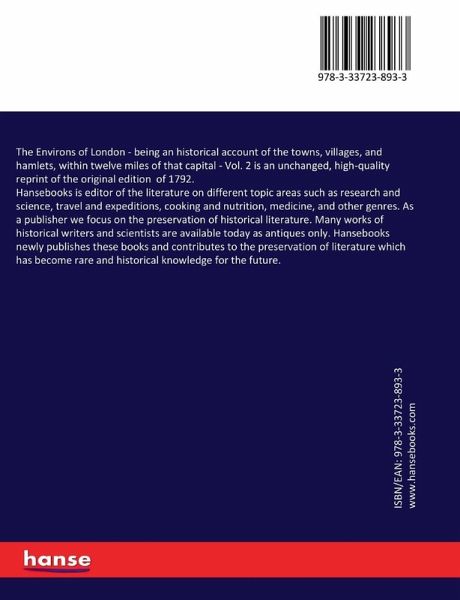 The Environs of London - being an historical account of the towns, villages, and hamlets, within twelve miles of that capital - Vol. 2 is an unchanged, high-quality reprint of the original edition of 1792.