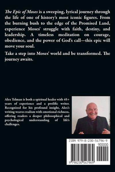Discover the Untold Majesty of Moses' Journey In The Epic of Moses, embark on a breathtaking journey through the life of one of history's most iconic figures-a man chosen by God to lead a nation from the chains of bondage to the edge of the Promised Land. This epic poem brings to life the trials, triumphs, and eternal struggles of Moses, exploring not only the incredible feats of leadership and courage that defined his life but the deep, personal battles of faith, doubt, and destiny he faced along the way. What is it like to hear the voice of God calling you to greatness, even when you feel utterly unworthy? How does it feel to bear the weight of an entire people's hopes and fears on your shoulders, knowing that your own fate is bound to something greater than yourself? The Epic of Moses dives into these questions with fierce emotional depth, capturing the human heart behind the biblical legend. From the burning bush to the mighty Exodus, from the trials of the desert to the moment he gazes upon the Promised Land he will never enter, Moses' story unfolds with power and poetry. This is a man who was not born a hero but became one by answering a call beyond his own understanding. His life was marked by moments of divine wonder and searing pain, and through it all, his unwavering faith in the God who led him forward transformed him-and the course of history itself. As you read, you will feel the pulse of a nation longing for freedom, the roar of a prophet speaking truth to power, and the inner conflict of a servant torn between his doubts and his destiny. Through vivid, lyrical language and rich imagery, this poem reveals the heart of Moses-his fears, his sacrifices, and his unyielding devotion to God's promise. This is more than just a retelling of an ancient tale. It is a meditation on the very nature of leadership, faith, and purpose. It's about finding strength in the face of adversity and believing in something greater than yourself, even when the path is unclear. It's about the timeless journey of trusting that God's plan for you is bigger than your own limitations. The Epic of Moses is a tribute to the power of God's call, the price of obedience, and the courage to stand firm in the face of impossible odds. Whether you are familiar with the biblical account or new to Moses' story, this powerful poem will pull you into a world of ancient wonders and timeless truths. Take a step into Moses' world and be transformed. The journey awaits.