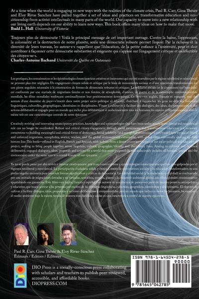 Creatively reviving and innovating emancipatory practices, knowledges and epistemologies that have been under attack by neoliberal and neocolonial rule can no longer be overlooked. Robust and critical citizen engagement through social movements and transformative education is a necessary cornerstone to building meaningful and critical forms of democracy. Social solidarity (and eco-global citizenship) is confronted by a myriad of forced and unforced migrations, xenophobia, avarice, warfare, and the global environmental catastrophe, with global elites continually shoring up their bottom line. This book-offered in English, French and Spanish, with authors from a dozen countries-is part of our socio-political and educational project, seeking to bring people together across linguistic, cultural, geographic, identity and disciplinary lines. Aiming to cultivate and facilitate deliberative, engaged dialogues, ideas, proposals and actions for a world that more purposefully and audaciously includes all humans, species and the environment under the same tent is a central feature of our epicenter. Les pratiques, les connaissances et les épistémologies émancipatrices créatives et innovantes qui ont été martelées par le régime néolibéral et néocolonial ne peuvent plus être négligées. Un engagement citoyen solide et critique par le biais de mouvements sociaux et d'une éducation transformatoire est une pierre angulaire nécessaire à la construction de formes de démocratie robustes et critiques. La solidarité sociale (et la citoyenneté éco*mondiale) est confrontée par une myriade de migrations forcées et non forcées, de xénophobie, d'avarice, de guerre et de la catastrophe environnementale mondiale, les élites mondiales renforçant continuellement leur positionnement économique. Ce livre-en anglais, français et espagnol, avec des auteurs d'une douzaine de pays-s'inscrit dans notre projet socio-politique et éducatif, cherchant à rapprocher les gens au-delà des frontières linguistiques, culturelles, géographiques, identitaires et disciplinaires. Visant à cultiver et à faciliter des dialogues, des idées, des propositions et des actions délibératifs et engagés pour un monde qui inclut plus délibérément et audacieusement tous les humains, les espèces et l'environnement sous le même toit est une caractéristique centrale de notre épicentre. Ya no se puede pasar por alto revivir e innovar creativamente prácticas, conocimientos y epistemologías emancipatorias que han sido golpeadas por el régimen neoliberal y neocolonial. La participación ciudadana sólida y crítica a través de movimientos sociales y la educación transformadora es una piedra angular necesaria para construir formas significativas y críticas de democracia. La solidaridad social (y la ciudadanía eco*global) es confrontada por una miríada de migraciones forzadas y no forzadas, xenofobia, avaricia, guerra y la catástrofe ambiental global, con élites globales continuamente apuntalando sus ganancias. Este libro-en inglés, francés y español, con autores de una docena de países-es parte de nuestro proyecto sociopolítico y educativo, que busca acercar a las personas a través de líneas lingüísticas, culturales, geográficas, identitarias y disciplinarias. El objetivo de cultivar y facilitar diálogos, ideas, propuestas y acciones deliberativas y comprometidas para un mundo que incluya a todos los humanos, las especies y el medio ambiente bajo la misma tienda de manera más decidida y audaz es una característica central de nuestro epicentro.