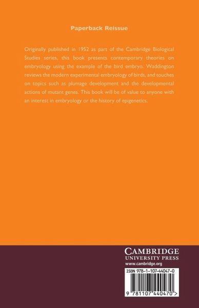 Originally published in 1952 as part of the Cambridge Biological Studies series, this book presents contemporary theories on embryology using the example of the bird embryo. Waddington reviews the modern experimental embryology of birds, and touches on topics such as plumage development and the developmental actions of mutant genes. This book will be of value to anyone with an interest in embryology or the history of epigenetics.