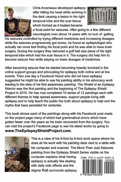 See the first ten completed epilepsy awareness painting series of The Epilepsy Shield Project done by Chris M. Arceneaux after he underwent brain surgery in 2014 to remove a golf ball size piece of his right temporal lope that had scar tissue from a lesion in it made him seizure free while being able to take lower doses of anti-seizure medicines. After his surgery he has became an epilepsy advocate online where someone suggested that he could try to use his artistic ability in his advocacy work. The suggestion led him to design and paint The Shield of an Epilepsy Warrior painting he completed in April 2015 and the name of the awareness project he started to help teach the public about epilepsy and fight myths that have been around for centuries.