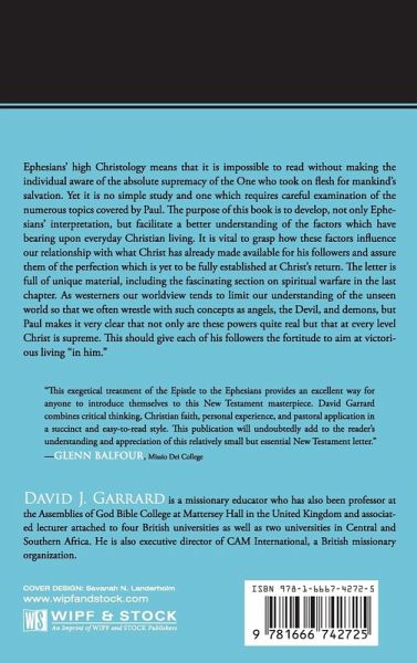 Ephesians' high Christology means that it is impossible to read without making the individual aware of the absolute supremacy of the One who took on flesh for mankind's salvation. Yet it is no simple study and one which requires careful examination of the numerous topics covered by Paul. The purpose of this book is to develop, not only Ephesians' interpretation, but facilitate a better understanding of the factors which have bearing upon everyday Christian living. It is vital to grasp how these factors influence our relationship with what Christ has already made available for his followers and assure them of the perfection which is yet to be fully established at Christ's return. The letter is full of unique material, including the fascinating section on spiritual warfare in the last chapter. As westerners our worldview tends to limit our understanding of the unseen world so that we often wrestle with such concepts as angels, the Devil, and demons, but Paul makes it very clear that not only are these powers quite real but that at every level Christ is supreme. This should give each of his followers the fortitude to aim at victorious living ""in him.""