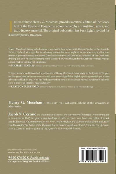 In this volume Henry G. Meecham provides a critical edition of the Greek text of the Epistle to Diognetus, accompanied by a translation, notes, and introductory material. The original publication has been lightly revised for a contemporary audience.