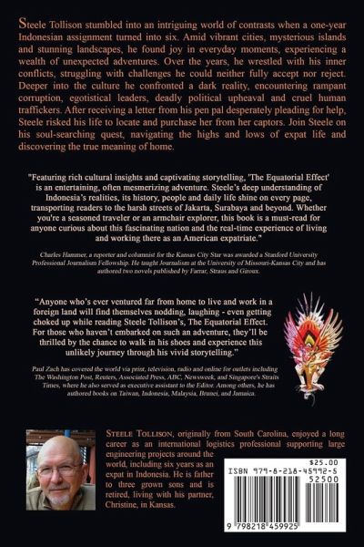 Steele Tollison is content with his new single life, reliable friends, budding romance and bright future. This is all about to change. Pressured into a one-year assignment that stretches into six, this unlikely expatriate unlocks an odyssey of self-discovery in far-away Indonesia. In this exotic culture, Steele finds adventure in the day-to-day, makes new friends and learns the language. Whenever man-made obstacles threaten critical schedules, he bends the rules in managing global supply contracts and logistics to assure equipment reaches the remote jobsites. Over time he encounters corruption, political upheaval, and the inhumane underworld of sex trafficking. He later marries an Indonesian girl and enjoys the comforts of family life. But that fragile peace shatters as Indonesia's economy collapses. Cities erupt in massive protests, looting and deadly rioting. Eluding gangs, roadblocks, and military, Steele combs the tangled city for baby food, finding only empty shelves. When danger escalates and airports close, he must decide - stay behind or escape the uprising with his family on the last flight out. In a chronicle that is candid, humorous and direct, The Equatorial Effect shares raw, captivating tales of romance, danger, personal redemption, and the quest for justice in a world fraught with moral ambiguity.