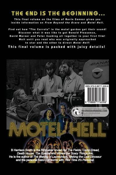 THE END IS THE BEGINNING... This final volume on the films of Kevin Connor gives you inside information on From Beyond the Grave and Motel Hell. Find out how "The Carrots" in the motel garden got their sound! Discover what it was like to get Donald Pleasence, David Warner and Peter Cushing all together in your first film! Wait until you read who was originally approached to star and the other to direct Motel Hell! This final volume is packed with juicy details! B Harrison Smith is the filmmaker known for The Fields, Camp Dread, Death House, The Special and Where the Scary Things Are. He is the author of The Making of Leprechaun, Making the Last Dinosaur and the personal history of horror with This Time It's Personal.