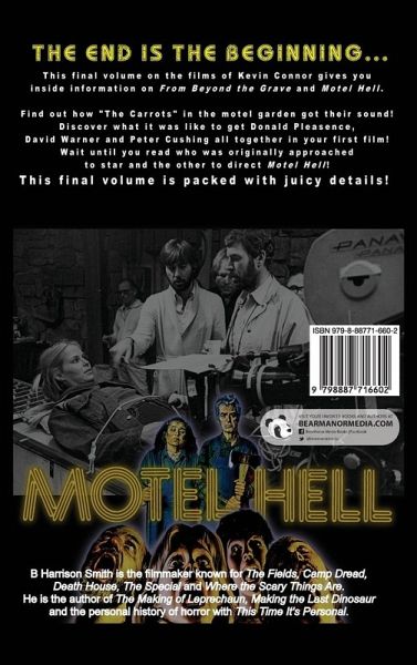 THE END IS THE BEGINNING... This final volume on the films of Kevin Connor gives you inside information on From Beyond the Grave and Motel Hell. Find out how "The Carrots" in the motel garden got their sound! Discover what it was like to get Donald Pleasence, David Warner and Peter Cushing all together in your first film! Wait until you read who was originally approached to star and the other to direct Motel Hell! This final volume is packed with juicy details! B Harrison Smith is the filmmaker known for The Fields, Camp Dread, Death House, The Special and Where the Scary Things Are. He is the author of The Making of Leprechaun, Making the Last Dinosaur and the personal history of horror with This Time It's Personal.