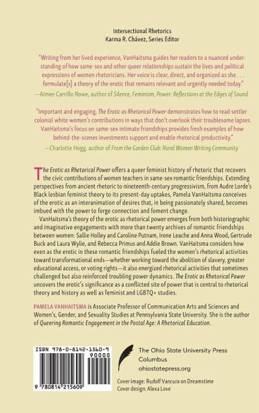 Winner, 2025 Marie Hochmuth Nichols Award from the National Communication Association's Public Address Division The Erotic as Rhetorical Power offers a queer feminist history of rhetoric that recovers the civic contributions of women teachers in same-sex romantic friendships. Extending perspectives from ancient rhetoric to nineteenth-century progressivism, from Audre Lorde's Black lesbian feminist theory to its present-day uptakes, Pamela VanHaitsma conceives of the erotic as an interanimation of desires that, in being passionately shared, becomes imbued with the power to forge connection and foment change. VanHaitsma's theory of the erotic as rhetorical power emerges from both historiographic and imaginative engagements with more than twenty archives of romantic friendships between women: Sallie Holley and Caroline Putnam, Irene Leache and Anna Wood, Gertrude Buck and Laura Wylie, and Rebecca Primus and Addie Brown. VanHaitsma considers how even as the erotic in these romantic friendships fueled the women's rhetorical activities toward transformational ends-whether working toward the abolition of slavery, greater educational access, or voting rights-it also energized rhetorical activities that sometimes challenged but also reinforced troubling power dynamics. The Erotic as Rhetorical Power uncovers the erotic's significance as a conflicted site of power that is central to rhetorical theory and history as well as feminist and LGBTQ+ studies.