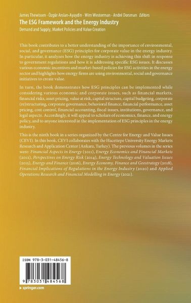 In turn, the book demonstrates how ESG principles can be implemented while considering various economic and corporate issues, such as financial markets, financial risks, asset pricing, value at risk, capital structure, capital budgeting, corporate (re)structuring, corporate governance, behavioral finance, financial performance, asset pricing, cost control, financial accounting, fiscal issues, institutions, governance, and legal aspects. Accordingly, it will appeal to scholars of economics, finance, and energy policy, and to anyone interested in the implementation of ESG principles in the energy industry.